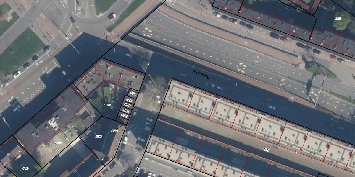 Pleinweg 242-B is gelegen op kadastraal perceel CLS00E4141. Deze kadastrale aanduiding is uniek en wordt gebruikt door het Kadaster om eigendomsrechten en andere zakelijke rechten vast te leggen. Het perceel maakt onderdeel uit van de kadastrale gemeente Charlois.