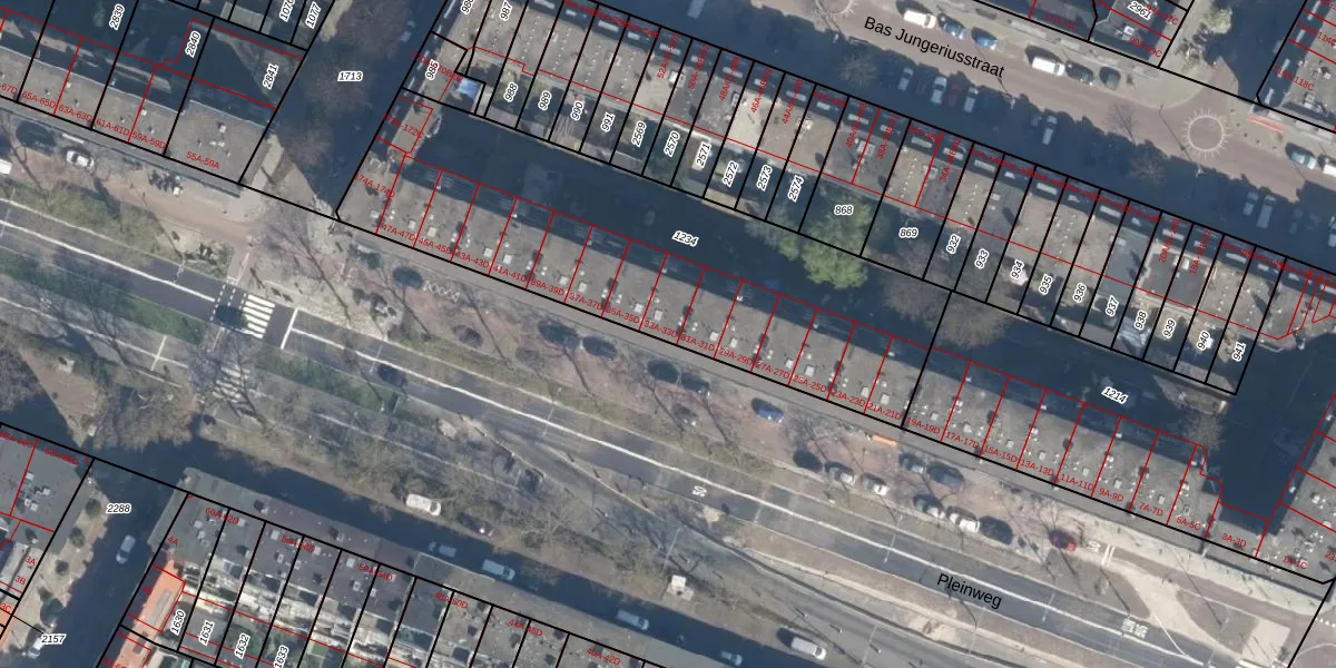 Pleinweg 33-A is gelegen op kadastraal perceel CLS00H1234. Deze kadastrale aanduiding is uniek en wordt gebruikt door het Kadaster om eigendomsrechten en andere zakelijke rechten vast te leggen. Het perceel maakt onderdeel uit van de kadastrale gemeente Charlois.