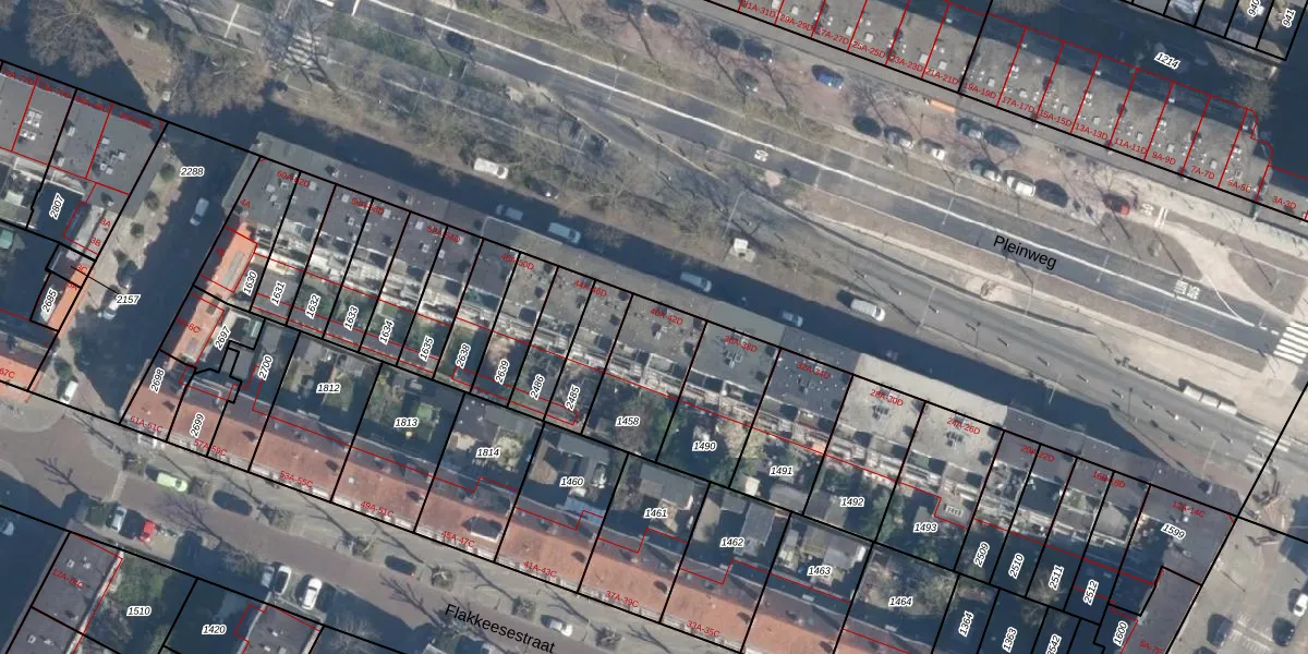 Pleinweg 42-B is gelegen op kadastraal perceel CLS00H1458. Deze kadastrale aanduiding is uniek en wordt gebruikt door het Kadaster om eigendomsrechten en andere zakelijke rechten vast te leggen. Het perceel maakt onderdeel uit van de kadastrale gemeente Charlois.