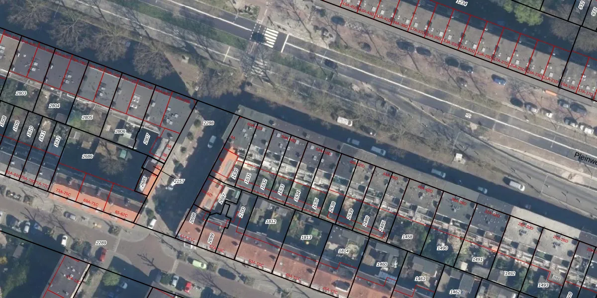 Pleinweg 56-D is gelegen op kadastraal perceel CLS00H1633. Deze kadastrale aanduiding is uniek en wordt gebruikt door het Kadaster om eigendomsrechten en andere zakelijke rechten vast te leggen. Het perceel maakt onderdeel uit van de kadastrale gemeente Charlois.