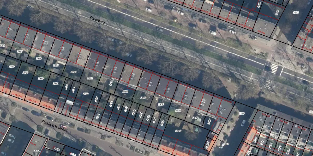 Pleinweg 82-B is gelegen op kadastraal perceel CLS00H2803. Deze kadastrale aanduiding is uniek en wordt gebruikt door het Kadaster om eigendomsrechten en andere zakelijke rechten vast te leggen. Het perceel maakt onderdeel uit van de kadastrale gemeente Charlois.
