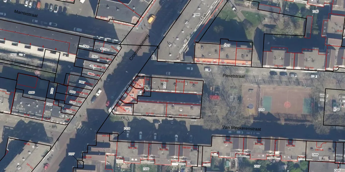 Pleretstraat 314 is gelegen op kadastraal perceel RTD07R7108. Deze kadastrale aanduiding is uniek en wordt gebruikt door het Kadaster om eigendomsrechten en andere zakelijke rechten vast te leggen. Het perceel maakt onderdeel uit van de kadastrale gemeente Rotterdam.