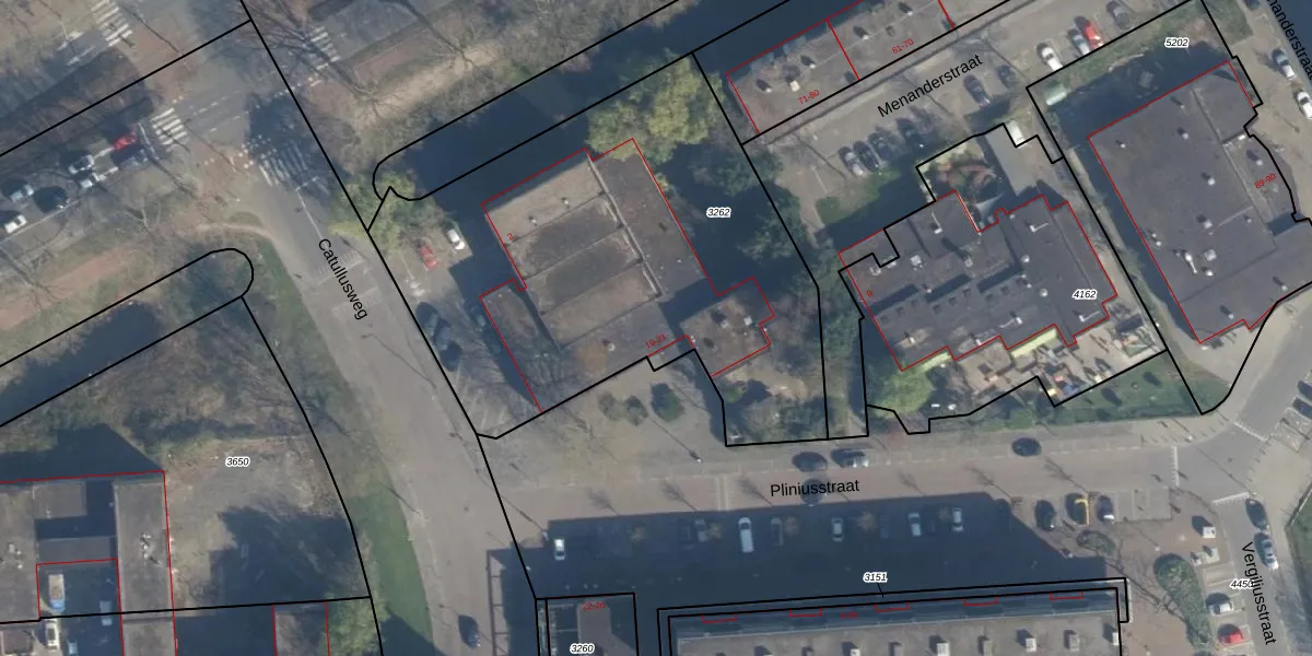Het perceel waarop Pliniusstraat 21 staat heeft een oppervlakte van 2548 m². Dit is een zeer groot perceel. De perceeloppervlakte wordt geregistreerd door het Kadaster. Gedetailleerde informatie over de maten van dit perceel kunt u vinden in het rapport Kadastrale kaart met maatvoering van Pliniusstraat 21.