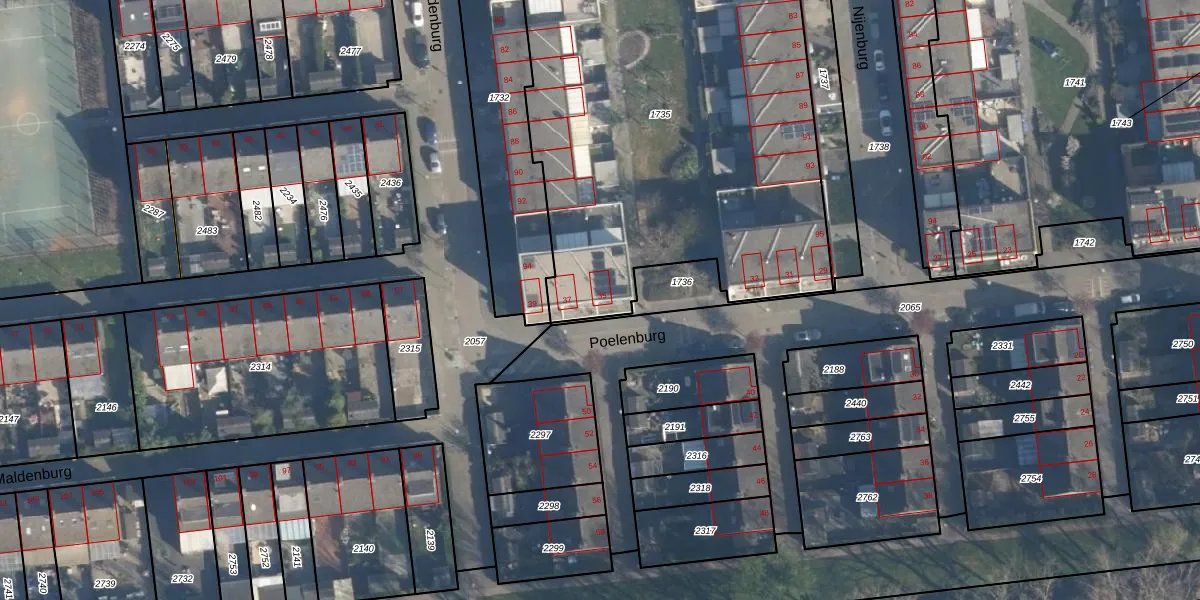 Het perceel waarop Poelenburg 35 staat heeft een oppervlakte van 2915 m². Dit is een zeer groot perceel. De perceeloppervlakte wordt geregistreerd door het Kadaster. Gedetailleerde informatie over de maten van dit perceel kunt u vinden in het rapport Kadastrale kaart met maatvoering van Poelenburg 35.