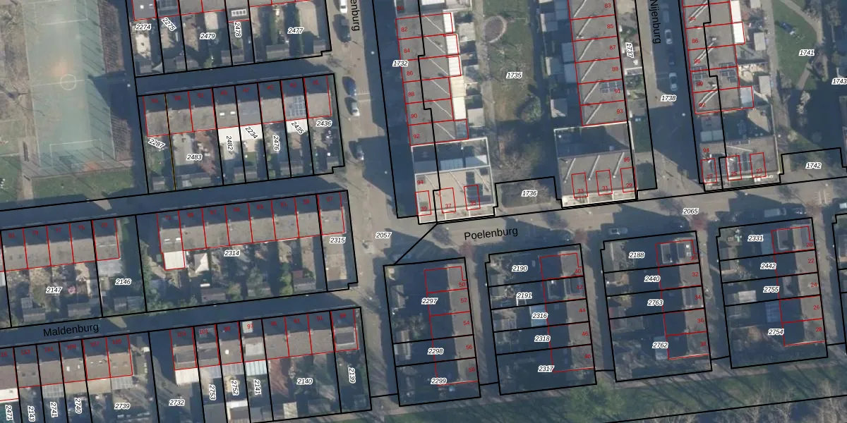 Het perceel waarop Poelenburg 39 staat heeft een oppervlakte van 657 m². Dit is een groot perceel. De perceeloppervlakte wordt geregistreerd door het Kadaster. Gedetailleerde informatie over de maten van dit perceel kunt u vinden in het rapport Kadastrale kaart met maatvoering van Poelenburg 39.