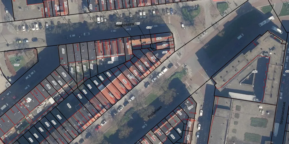Polderlaan 13-A-02 is gelegen op kadastraal perceel CLS00G1670. Deze kadastrale aanduiding is uniek en wordt gebruikt door het Kadaster om eigendomsrechten en andere zakelijke rechten vast te leggen. Het perceel maakt onderdeel uit van de kadastrale gemeente Charlois.