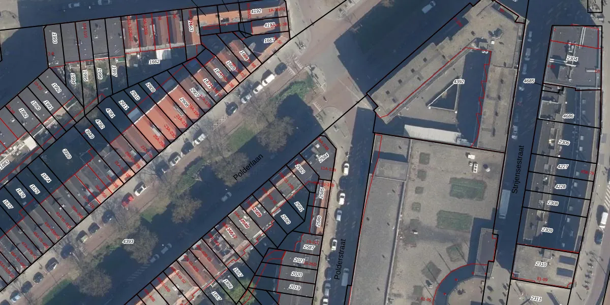 Polderlaan 24-B is gelegen op kadastraal perceel CLS00F2584. Deze kadastrale aanduiding is uniek en wordt gebruikt door het Kadaster om eigendomsrechten en andere zakelijke rechten vast te leggen. Het perceel maakt onderdeel uit van de kadastrale gemeente Charlois.