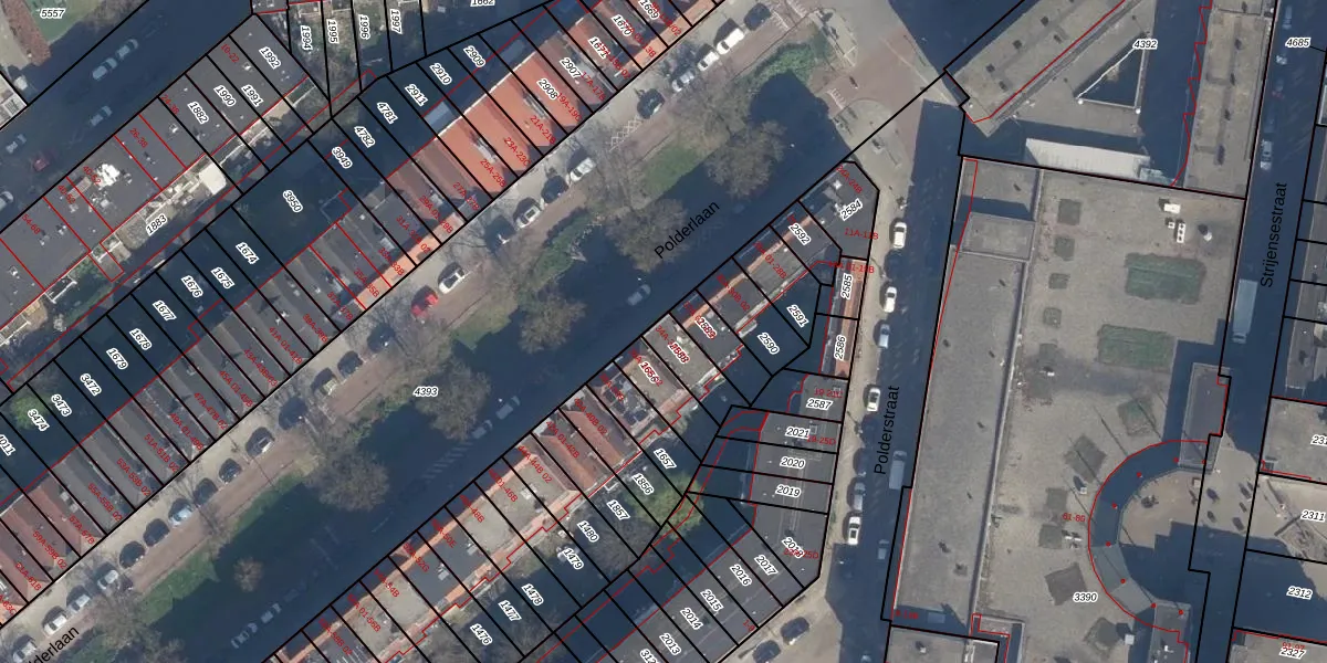 Polderlaan 34-B-01 is gelegen op kadastraal perceel CLS00F2588. Deze kadastrale aanduiding is uniek en wordt gebruikt door het Kadaster om eigendomsrechten en andere zakelijke rechten vast te leggen. Het perceel maakt onderdeel uit van de kadastrale gemeente Charlois.