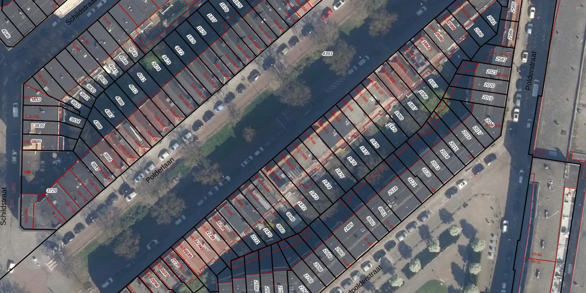 Polderlaan 56-B is gelegen op kadastraal perceel CLS00F1474. Deze kadastrale aanduiding is uniek en wordt gebruikt door het Kadaster om eigendomsrechten en andere zakelijke rechten vast te leggen. Het perceel maakt onderdeel uit van de kadastrale gemeente Charlois.