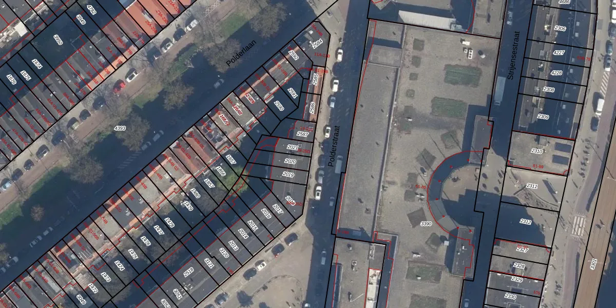 Polderstraat 21-D is gelegen op kadastraal perceel CLS00F2021. Deze kadastrale aanduiding is uniek en wordt gebruikt door het Kadaster om eigendomsrechten en andere zakelijke rechten vast te leggen. Het perceel maakt onderdeel uit van de kadastrale gemeente Charlois.