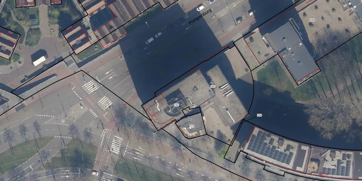 Het perceel waarop Pompenburg 188 staat heeft een oppervlakte van 1825 m². Dit is een zeer groot perceel. De perceeloppervlakte wordt geregistreerd door het Kadaster. Gedetailleerde informatie over de maten van dit perceel kunt u vinden in het rapport Kadastrale kaart met maatvoering van Pompenburg 188.