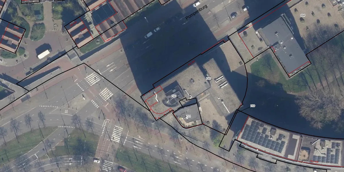 Het perceel waarop Pompenburg 298 staat heeft een oppervlakte van 1825 m². Dit is een zeer groot perceel. De perceeloppervlakte wordt geregistreerd door het Kadaster. Gedetailleerde informatie over de maten van dit perceel kunt u vinden in het rapport Kadastrale kaart met maatvoering van Pompenburg 298.