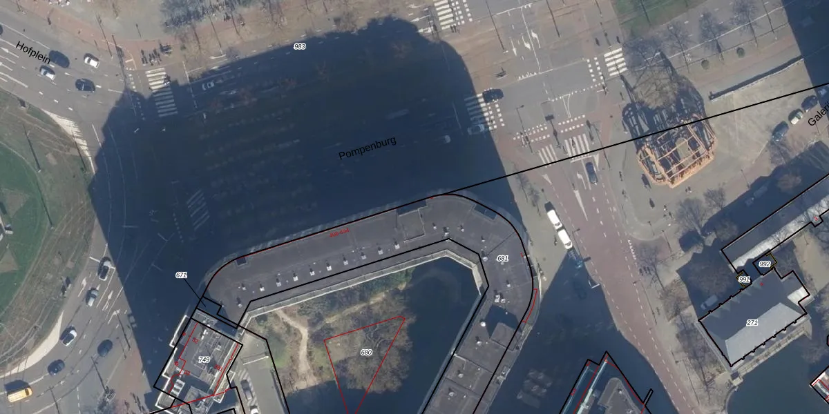 Het perceel waarop Pompenburg 572 staat heeft een oppervlakte van 1770 m². Dit is een zeer groot perceel. De perceeloppervlakte wordt geregistreerd door het Kadaster. Gedetailleerde informatie over de maten van dit perceel kunt u vinden in het rapport Kadastrale kaart met maatvoering van Pompenburg 572.
