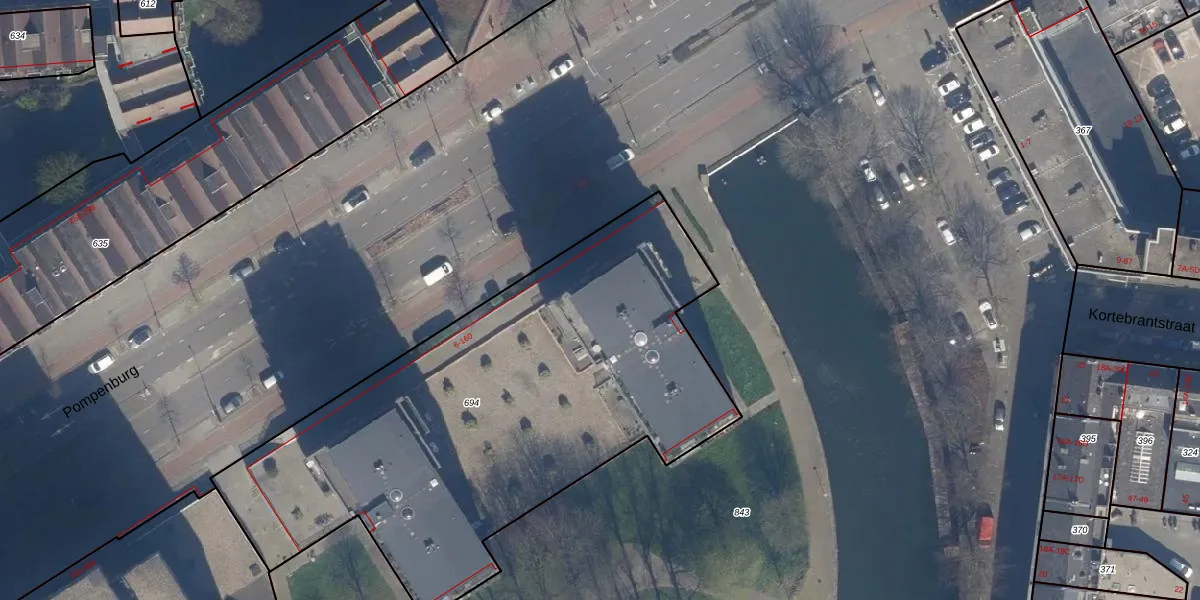 Het perceel waarop Pompenburg 62 staat heeft een oppervlakte van 2775 m². Dit is een zeer groot perceel. De perceeloppervlakte wordt geregistreerd door het Kadaster. Gedetailleerde informatie over de maten van dit perceel kunt u vinden in het rapport Kadastrale kaart met maatvoering van Pompenburg 62.