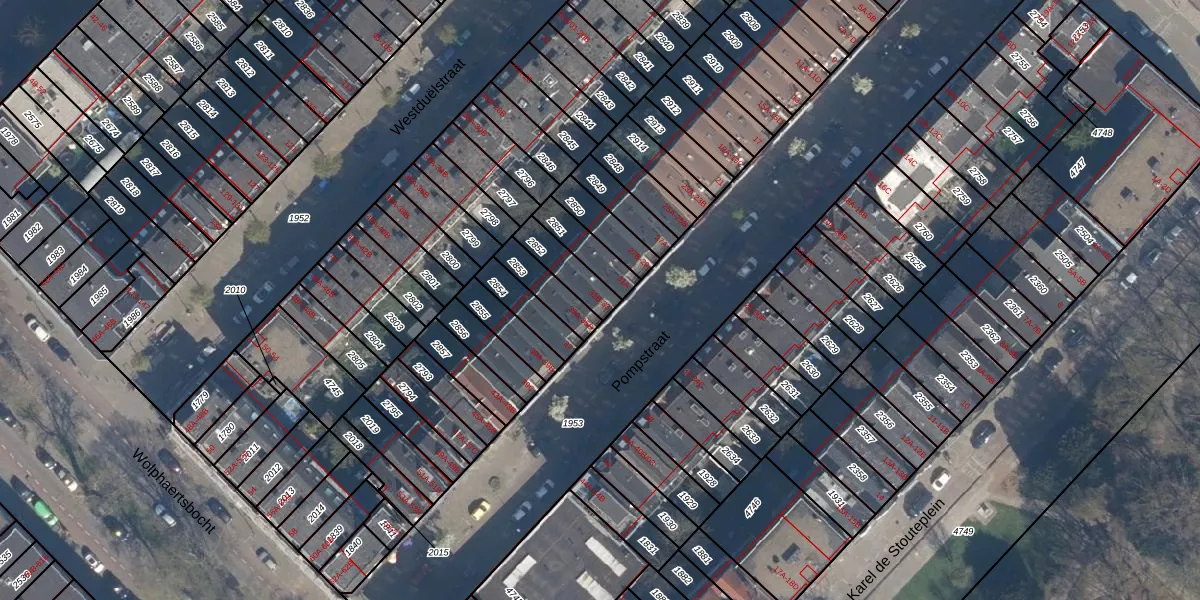 Pompstraat 33 is gelegen op kadastraal perceel CLS00E2852. Deze kadastrale aanduiding is uniek en wordt gebruikt door het Kadaster om eigendomsrechten en andere zakelijke rechten vast te leggen. Het perceel maakt onderdeel uit van de kadastrale gemeente Charlois.