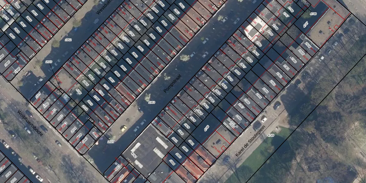Pompstraat 34-B is gelegen op kadastraal perceel CLS00E2634. Deze kadastrale aanduiding is uniek en wordt gebruikt door het Kadaster om eigendomsrechten en andere zakelijke rechten vast te leggen. Het perceel maakt onderdeel uit van de kadastrale gemeente Charlois.