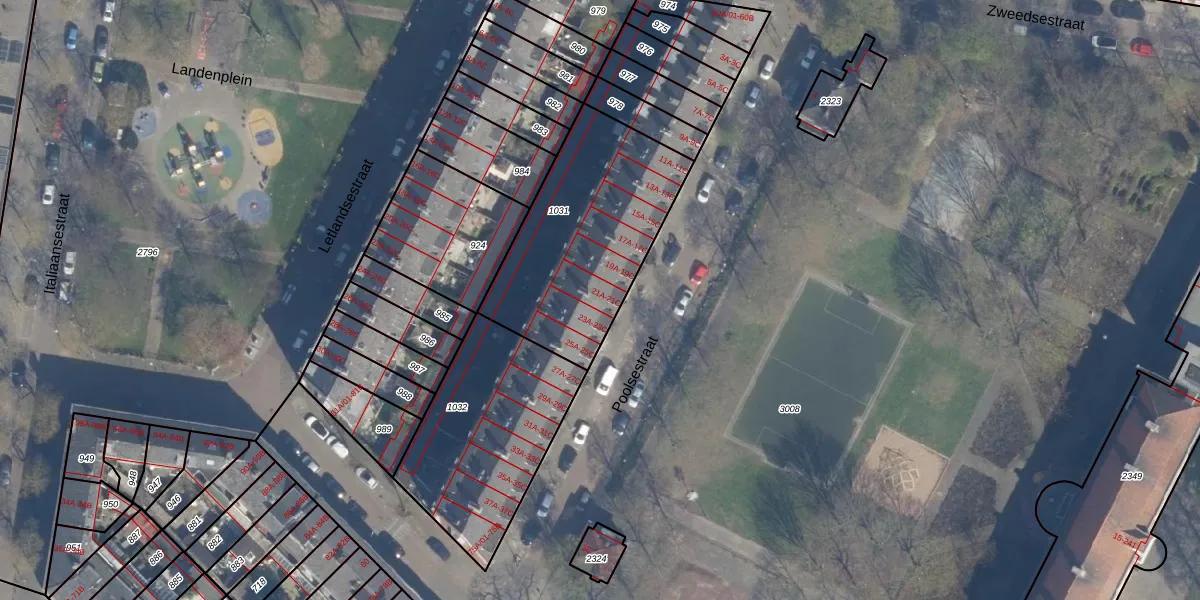 Het perceel waarop Poolsestraat 21-B staat heeft een oppervlakte van 839 m². Dit is een groot perceel. De perceeloppervlakte wordt geregistreerd door het Kadaster. Gedetailleerde informatie over de maten van dit perceel kunt u vinden in het rapport Kadastrale kaart met maatvoering van Poolsestraat 21-B.