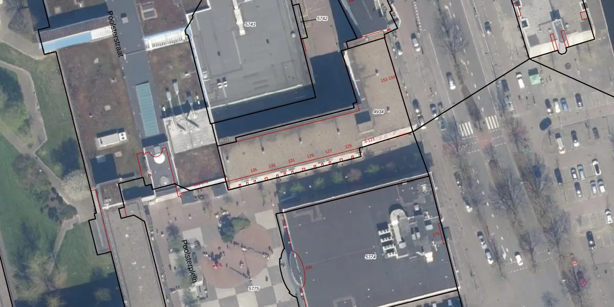 Het perceel waarop Poolsterplein 129 staat heeft een oppervlakte van 1221 m². Dit is een zeer groot perceel. De perceeloppervlakte wordt geregistreerd door het Kadaster. Gedetailleerde informatie over de maten van dit perceel kunt u vinden in het rapport Kadastrale kaart met maatvoering van Poolsterplein 129.