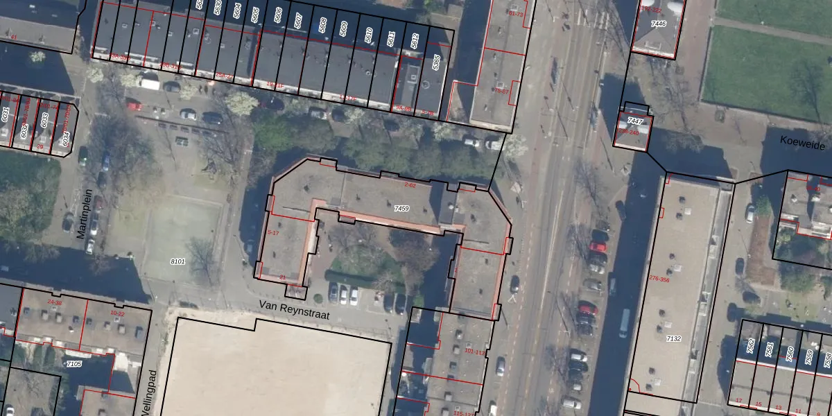 Het adres is gelegen op perceel 7459 in de sectie R en de kadastrale gemeente Rotterdam. De kadastrale aanduiding is aldus RTD07-R-7459. De gemiddelde perceeloppervlakte in de kadastrale gemeente Rotterdam is 506,86 m². Dit perceel is met zijn 1115 m² dus groter dan gemiddeld. Het grootste perceel in de kadastrale gemeente is 10,8 ha. Het kleinste perceel heeft een oppervlakte van 0 m². Op het perceel liggen in totaal 37 adressen. De huidige grenzen van het perceel zijn digitaal in de Basisregistratie Kadaster (BRK) geregistreerd op 21-01-2010.