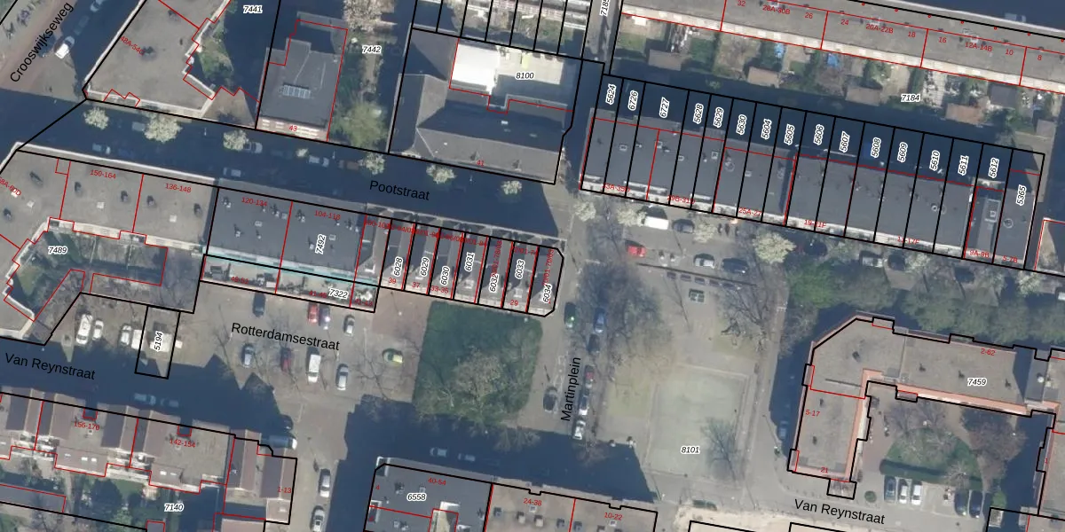 Het adres is gelegen op perceel 6033 in de sectie R en de kadastrale gemeente Rotterdam. De kadastrale aanduiding is aldus RTD07-R-6033. Het perceel is kleiner dan gemiddeld in Rotterdam. Het perceel is 60 m² groot, terwijl het gemiddelde ligt op 506,86 m². Het grootste perceel in de kadastrale gemeente is 10,8 ha. Het kleinste perceel heeft een oppervlakte van 0 m². Op het perceel liggen in totaal 5 adressen. De laatste wijziging in het de Basisregistratie Kadaster (BRK) was op 24-01-2003.