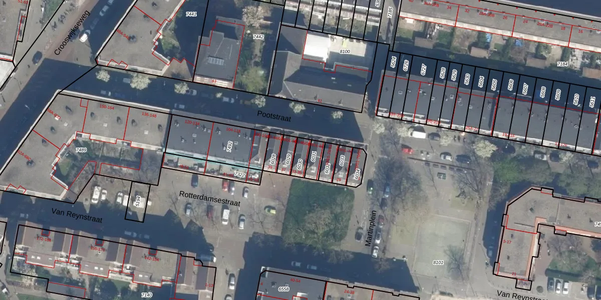 Het adres is gelegen op perceel 6030 in de sectie R en de kadastrale gemeente Rotterdam. De kadastrale aanduiding is aldus RTD07-R-6030. Het perceel is kleiner dan gemiddeld in Rotterdam. Het perceel is 60 m² groot, terwijl het gemiddelde ligt op 506,86 m². Het grootste perceel in de kadastrale gemeente is 10,8 ha. Het kleinste perceel heeft een oppervlakte van 0 m². Er zijn 7 adressen aanwezig op het perceel. De huidige grenzen van het perceel zijn digitaal in de Basisregistratie Kadaster (BRK) geregistreerd op 24-01-2003.