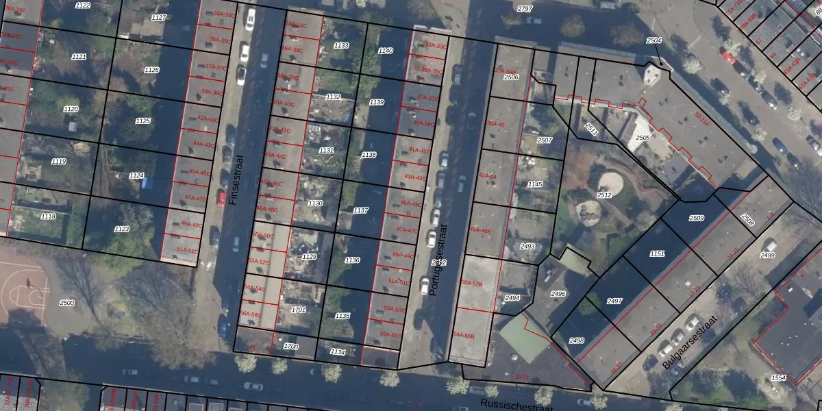 Portugesestraat 45-B is gelegen op kadastraal perceel RTD10AA1137. Deze kadastrale aanduiding is uniek en wordt gebruikt door het Kadaster om eigendomsrechten en andere zakelijke rechten vast te leggen. Het perceel maakt onderdeel uit van de kadastrale gemeente Rotterdam.