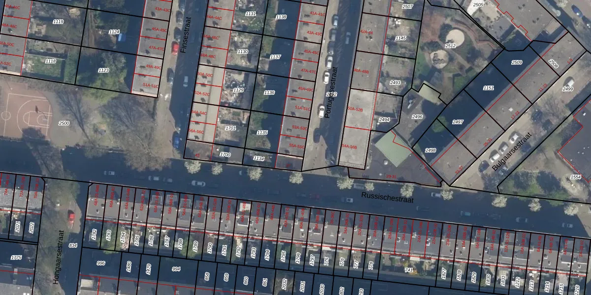 Het perceel waarop Portugesestraat 55-C staat heeft een oppervlakte van 262 m². Dit is een middelgroot perceel. De perceeloppervlakte wordt geregistreerd door het Kadaster. Gedetailleerde informatie over de maten van dit perceel kunt u vinden in het rapport Kadastrale kaart met maatvoering van Portugesestraat 55-C.