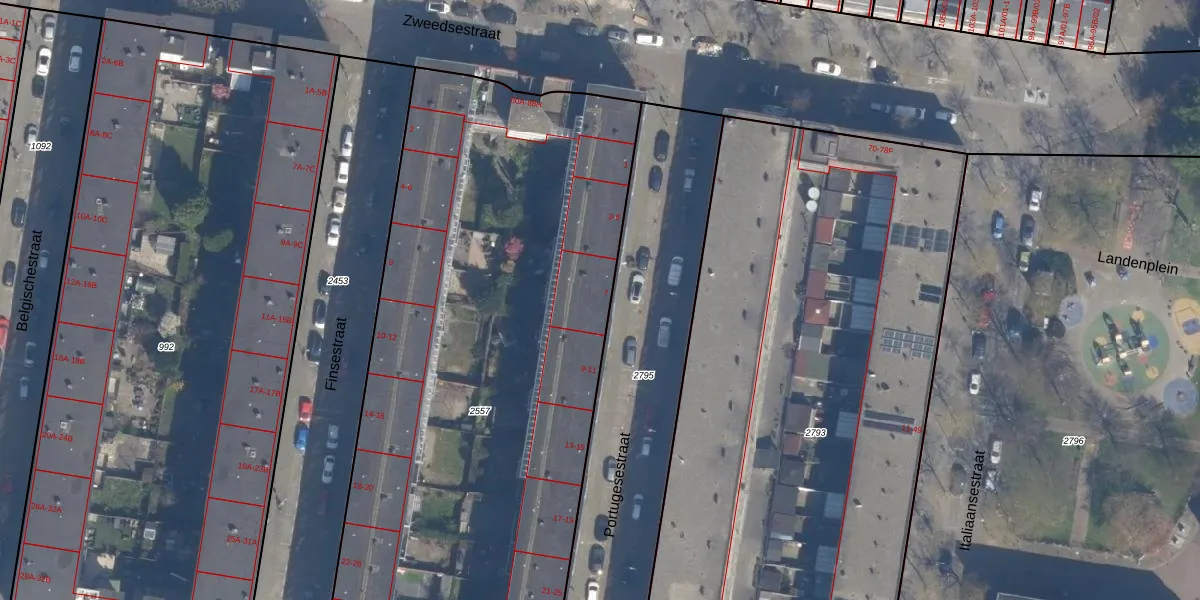 Het perceel waarop Portugesestraat 7 staat heeft een oppervlakte van 3846 m². Dit is een zeer groot perceel. De perceeloppervlakte wordt geregistreerd door het Kadaster. Gedetailleerde informatie over de maten van dit perceel kunt u vinden in het rapport Kadastrale kaart met maatvoering van Portugesestraat 7.