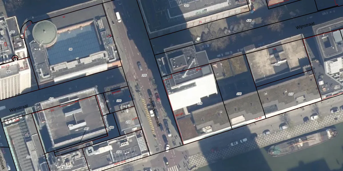 Het adres ligt op het perceel RTD04-AH-129, dat zich in de kadastrale gemeente Rotterdam bevindt. De oppervlakte van het perceel is 1253 m². Dat is groter dan gemiddeld in Rotterdam, waar de gemiddelde perceeloppervlakte op 1239,97 m² ligt. De grootste perceeloppervlakte in de kadastrale gemeente is 17,3 ha. De kleinste oppervlakte bedraagt 0 m². Er zijn 116 adressen aanwezig op het perceel. In de Basisregistratie Kadaster (BRK) werden de grenzen van het perceel geregistreerd op 21-01-2003.