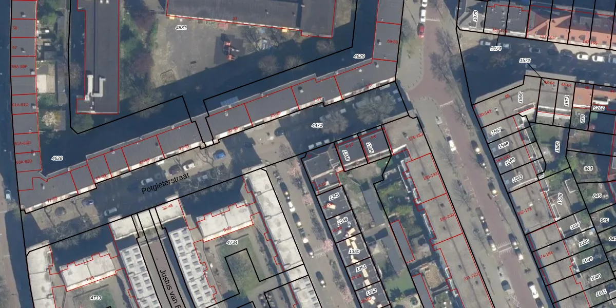 Potgieterstraat 14 is gelegen op kadastraal perceel RTD10Z1347. Deze kadastrale aanduiding is uniek en wordt gebruikt door het Kadaster om eigendomsrechten en andere zakelijke rechten vast te leggen. Het perceel maakt onderdeel uit van de kadastrale gemeente Rotterdam.