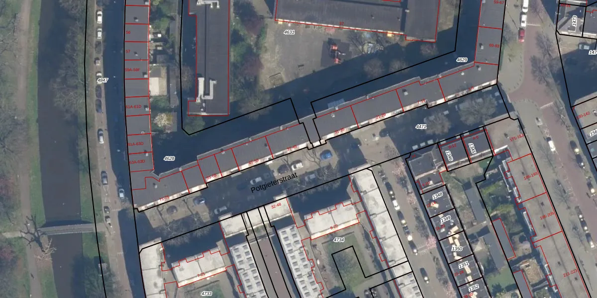 Het perceel waarop Potgieterstraat 43 staat heeft een oppervlakte van 2320 m². Dit is een zeer groot perceel. De perceeloppervlakte wordt geregistreerd door het Kadaster. Gedetailleerde informatie over de maten van dit perceel kunt u vinden in het rapport Kadastrale kaart met maatvoering van Potgieterstraat 43.
