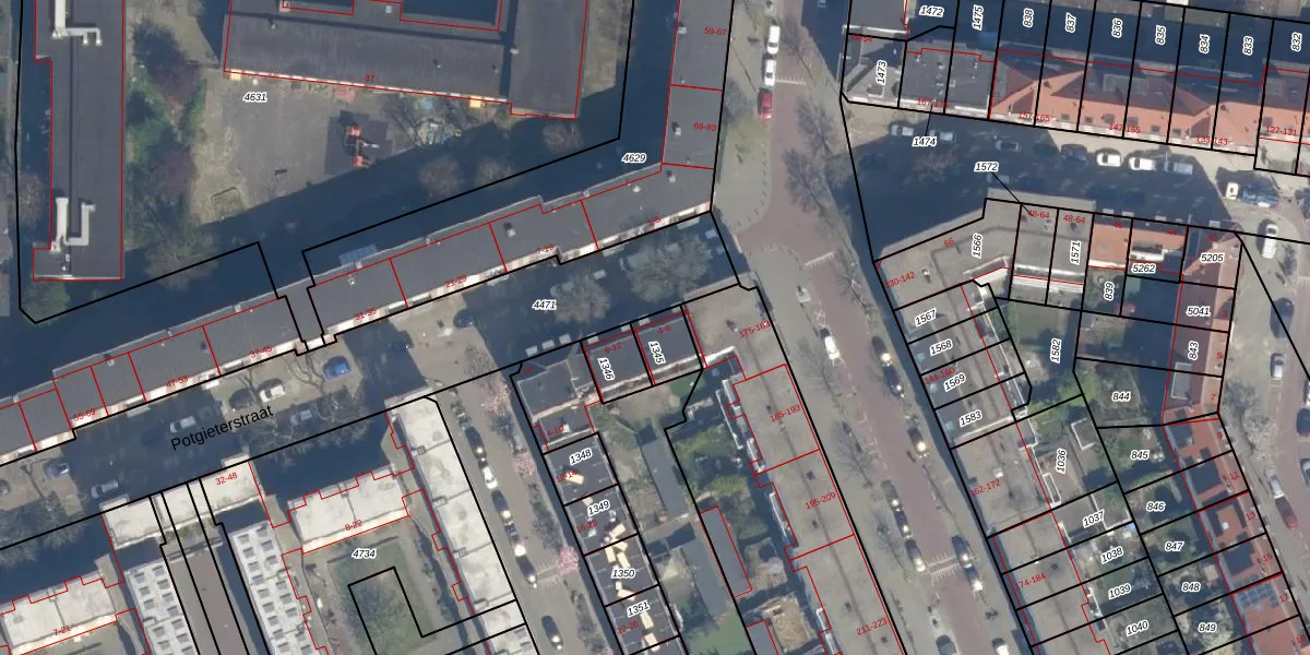 Potgieterstraat 6 is gelegen op kadastraal perceel RTD10Z1345. Deze kadastrale aanduiding is uniek en wordt gebruikt door het Kadaster om eigendomsrechten en andere zakelijke rechten vast te leggen. Het perceel maakt onderdeel uit van de kadastrale gemeente Rotterdam.