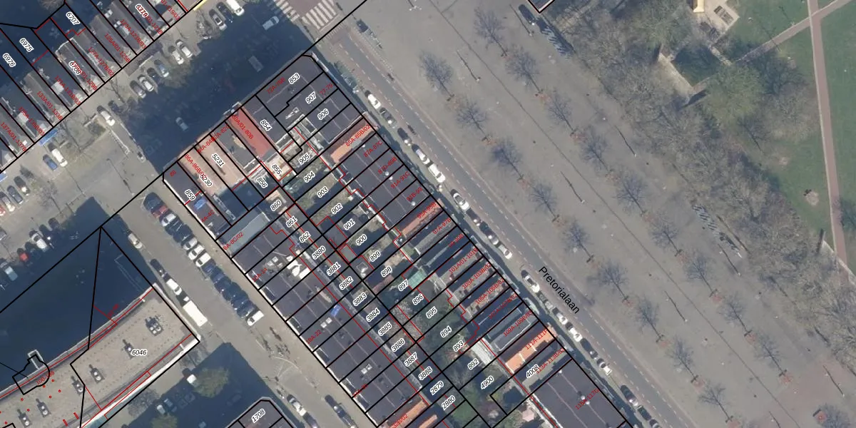 Pretorialaan 95-B is gelegen op kadastraal perceel CLS00G899. Deze kadastrale aanduiding is uniek en wordt gebruikt door het Kadaster om eigendomsrechten en andere zakelijke rechten vast te leggen. Het perceel maakt onderdeel uit van de kadastrale gemeente Charlois.