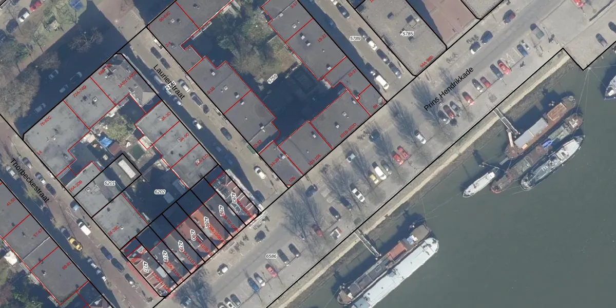 Prins Hendrikkade 104-B is gelegen op kadastraal perceel RTD05Q5759. Deze kadastrale aanduiding is uniek en wordt gebruikt door het Kadaster om eigendomsrechten en andere zakelijke rechten vast te leggen. Het perceel maakt onderdeel uit van de kadastrale gemeente Rotterdam.
