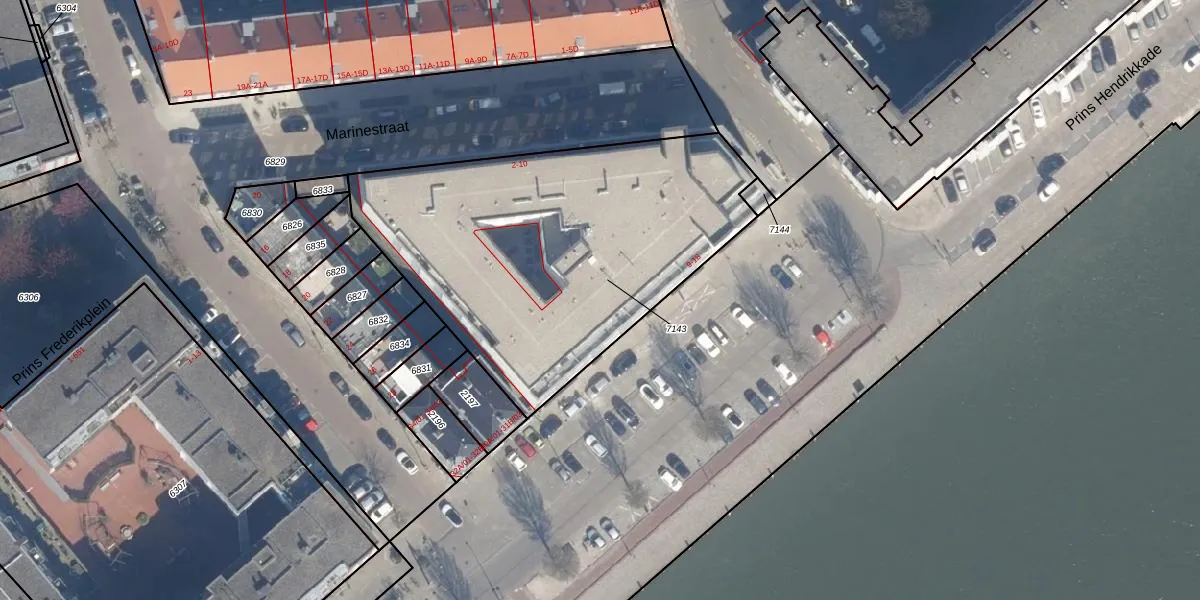 Prins Hendrikkade 12 is gelegen op kadastraal perceel RTD05Q7143. Deze kadastrale aanduiding is uniek en wordt gebruikt door het Kadaster om eigendomsrechten en andere zakelijke rechten vast te leggen. Het perceel maakt onderdeel uit van de kadastrale gemeente Rotterdam.