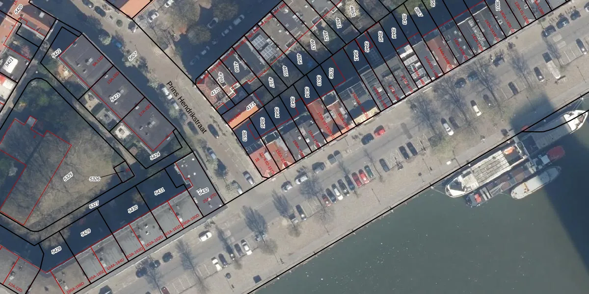 Prins Hendrikkade 155-B is gelegen op kadastraal perceel RTD05Q3644. Deze kadastrale aanduiding is uniek en wordt gebruikt door het Kadaster om eigendomsrechten en andere zakelijke rechten vast te leggen. Het perceel maakt onderdeel uit van de kadastrale gemeente Rotterdam.