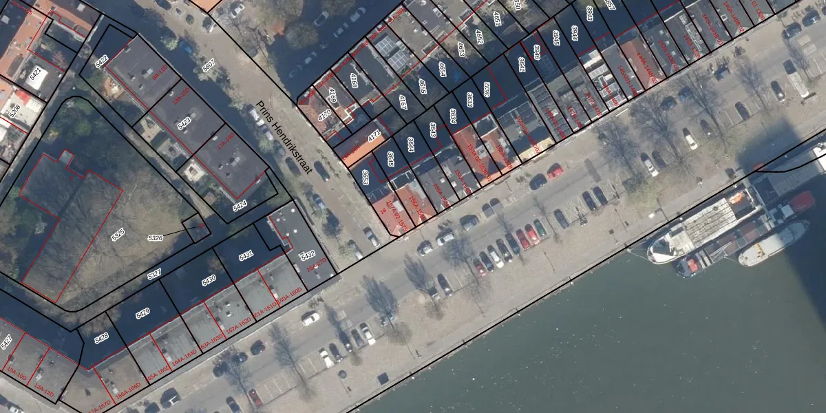 Prins Hendrikkade 156-B is gelegen op kadastraal perceel RTD05Q3645. Deze kadastrale aanduiding is uniek en wordt gebruikt door het Kadaster om eigendomsrechten en andere zakelijke rechten vast te leggen. Het perceel maakt onderdeel uit van de kadastrale gemeente Rotterdam.