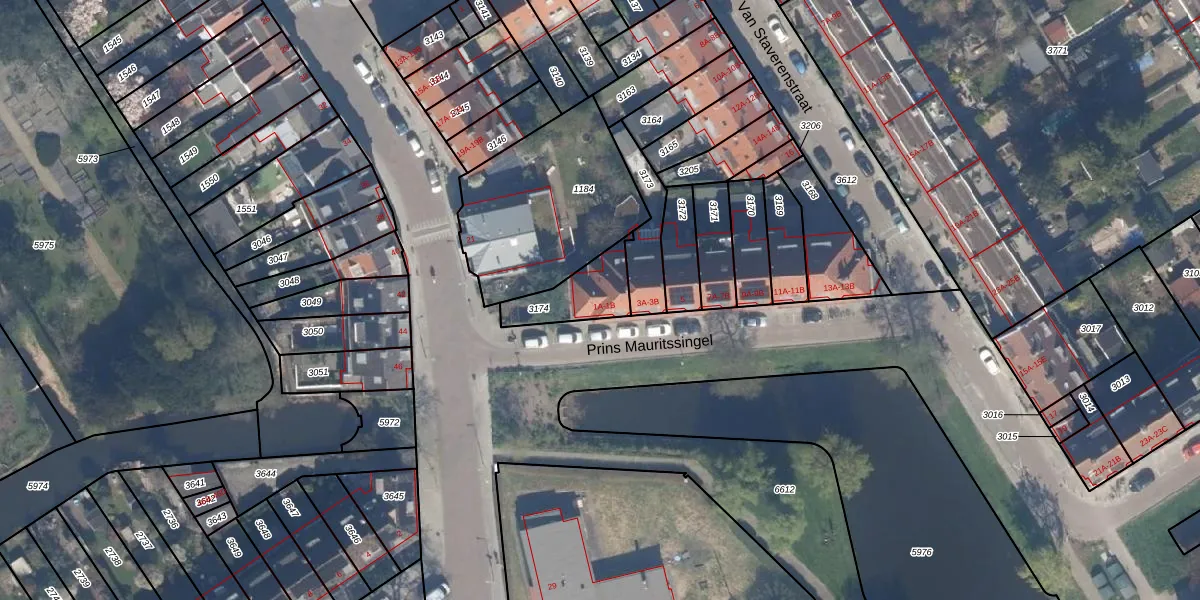 Prins Mauritssingel 1-B is gelegen op kadastraal perceel OVS00C3174. Deze kadastrale aanduiding is uniek en wordt gebruikt door het Kadaster om eigendomsrechten en andere zakelijke rechten vast te leggen. Het perceel maakt onderdeel uit van de kadastrale gemeente Overschie.