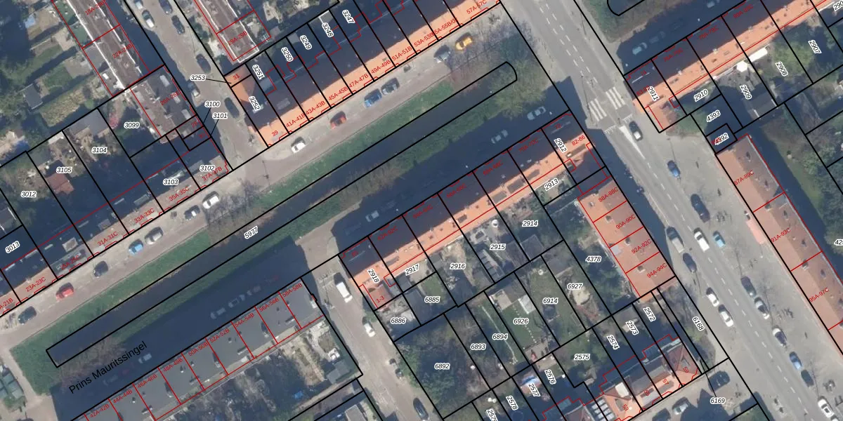 Prins Mauritssingel 64-A is gelegen op kadastraal perceel OVS00C2916. Deze kadastrale aanduiding is uniek en wordt gebruikt door het Kadaster om eigendomsrechten en andere zakelijke rechten vast te leggen. Het perceel maakt onderdeel uit van de kadastrale gemeente Overschie.