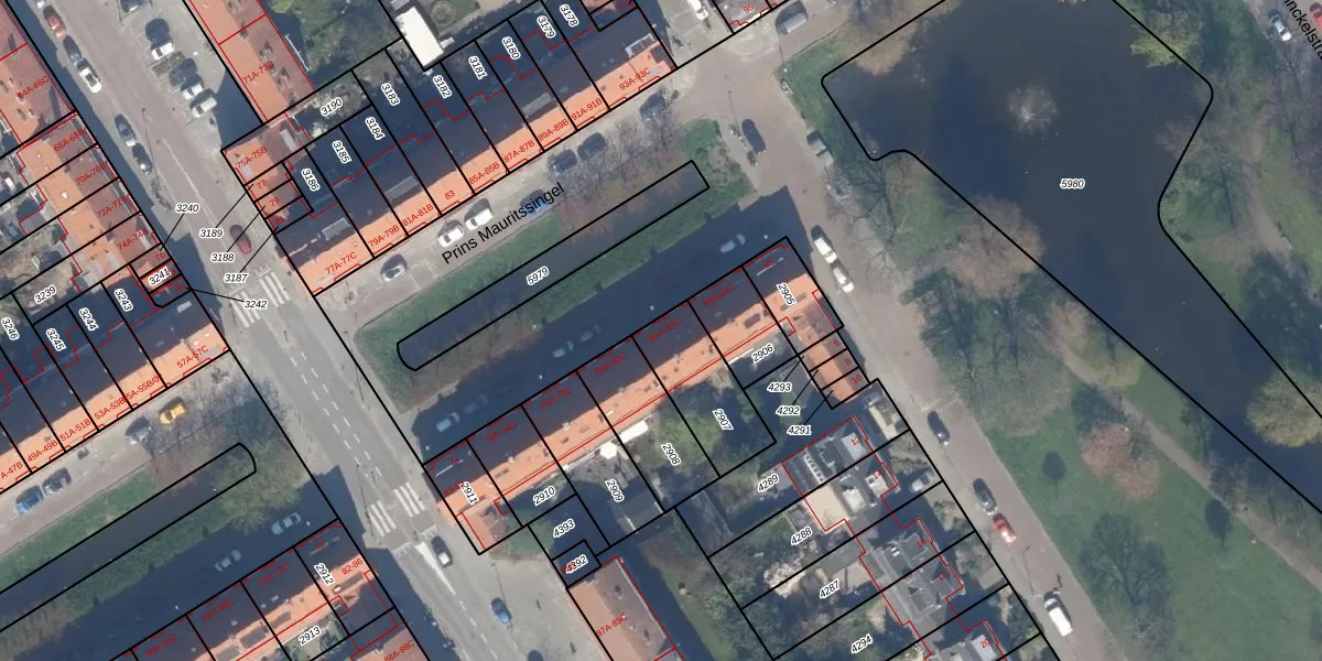Prins Mauritssingel 82-A is gelegen op kadastraal perceel OVS00C2907. Deze kadastrale aanduiding is uniek en wordt gebruikt door het Kadaster om eigendomsrechten en andere zakelijke rechten vast te leggen. Het perceel maakt onderdeel uit van de kadastrale gemeente Overschie.