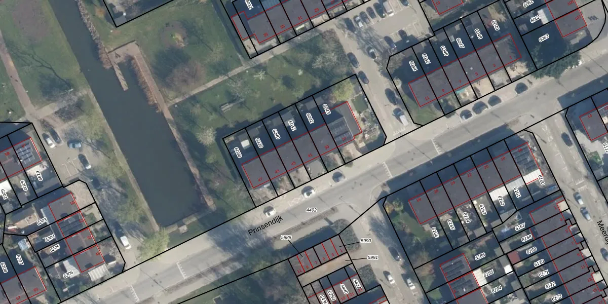 Prinsendijk 41 is gelegen op kadastraal perceel ISM01B6041. Deze kadastrale aanduiding is uniek en wordt gebruikt door het Kadaster om eigendomsrechten en andere zakelijke rechten vast te leggen. Het perceel maakt onderdeel uit van de kadastrale gemeente IJsselmonde.