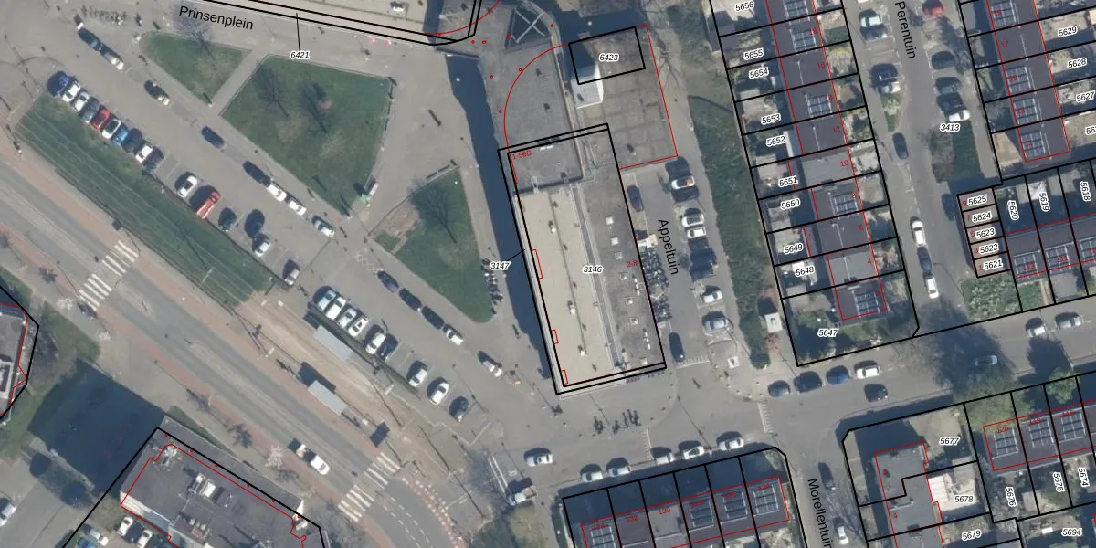 Het perceel waarop Prinsenplein 3 staat heeft een oppervlakte van 831 m². Dit is een groot perceel. De perceeloppervlakte wordt geregistreerd door het Kadaster. Gedetailleerde informatie over de maten van dit perceel kunt u vinden in het rapport Kadastrale kaart met maatvoering van Prinsenplein 3.