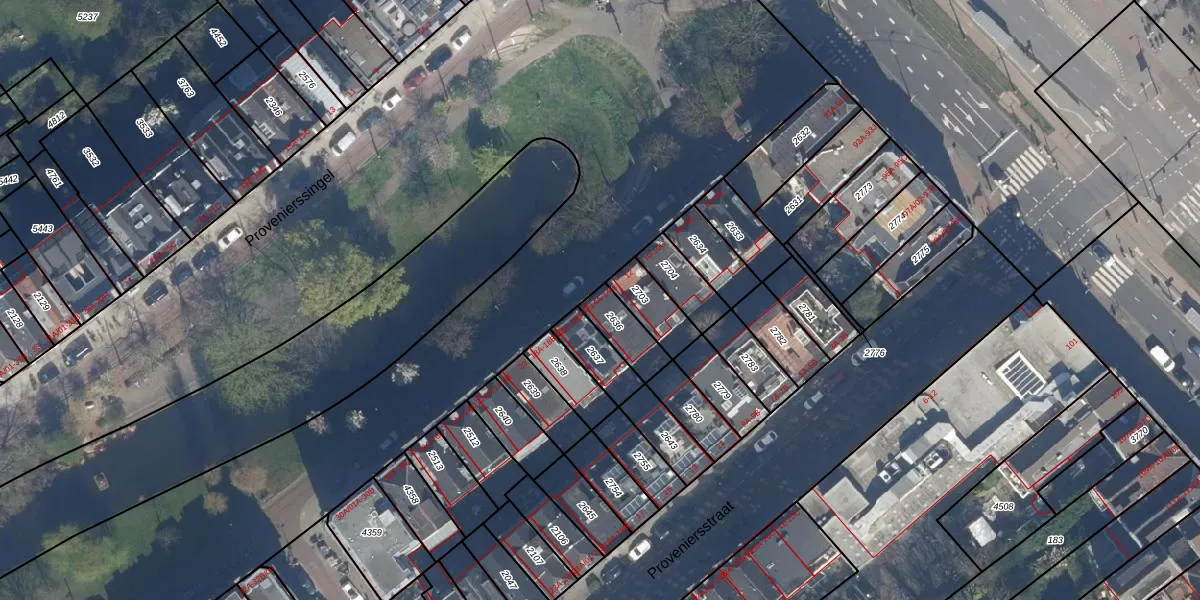 Provenierssingel 14-A is gelegen op kadastraal perceel RTD06S2636. Deze kadastrale aanduiding is uniek en wordt gebruikt door het Kadaster om eigendomsrechten en andere zakelijke rechten vast te leggen. Het perceel maakt onderdeel uit van de kadastrale gemeente Rotterdam.