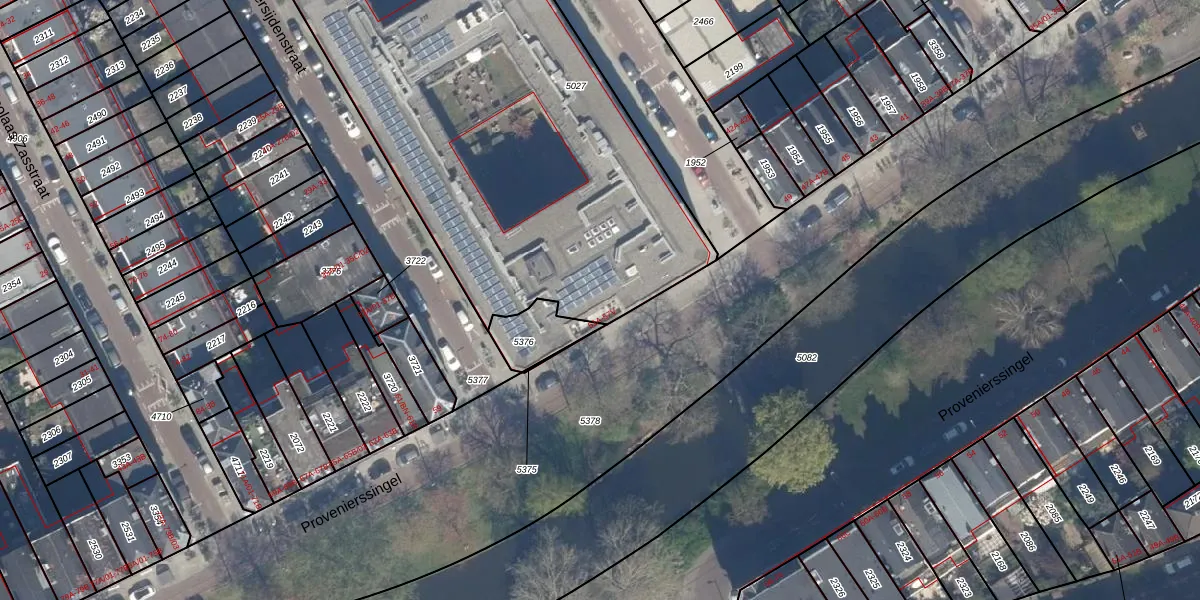 Het perceel waarop Provenierssingel 57-M staat heeft een oppervlakte van 2502 m². Dit is een zeer groot perceel. De perceeloppervlakte wordt geregistreerd door het Kadaster. Gedetailleerde informatie over de maten van dit perceel kunt u vinden in het rapport Kadastrale kaart met maatvoering van Provenierssingel 57-M.