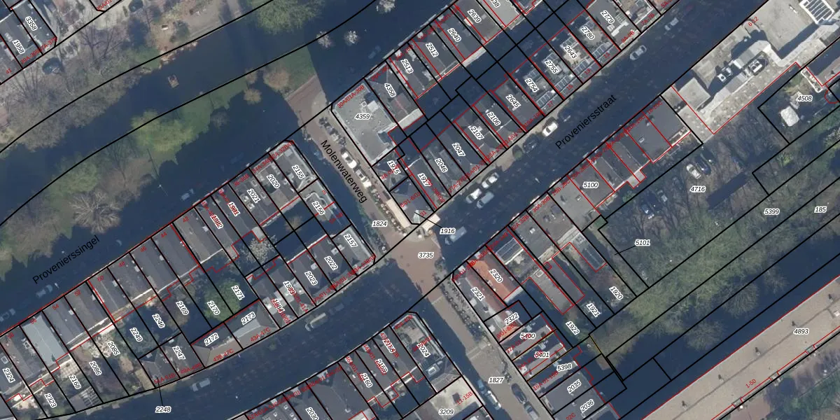 Het perceel waarop Proveniersstraat 31 staat heeft een oppervlakte van 61 m². Dit is een klein perceel. De perceeloppervlakte wordt geregistreerd door het Kadaster. Gedetailleerde informatie over de maten van dit perceel kunt u vinden in het rapport Kadastrale kaart met maatvoering van Proveniersstraat 31.