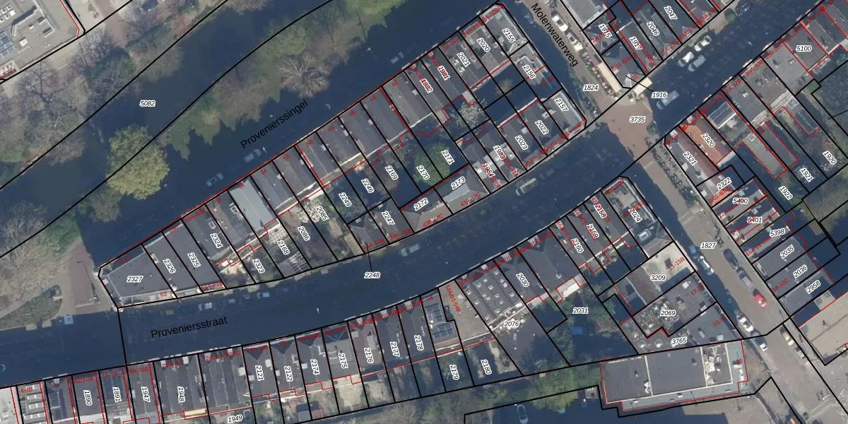 Het perceel waarop Proveniersstraat 47-B staat heeft een oppervlakte van 75 m². Dit is een klein perceel. De perceeloppervlakte wordt geregistreerd door het Kadaster. Gedetailleerde informatie over de maten van dit perceel kunt u vinden in het rapport Kadastrale kaart met maatvoering van Proveniersstraat 47-B.