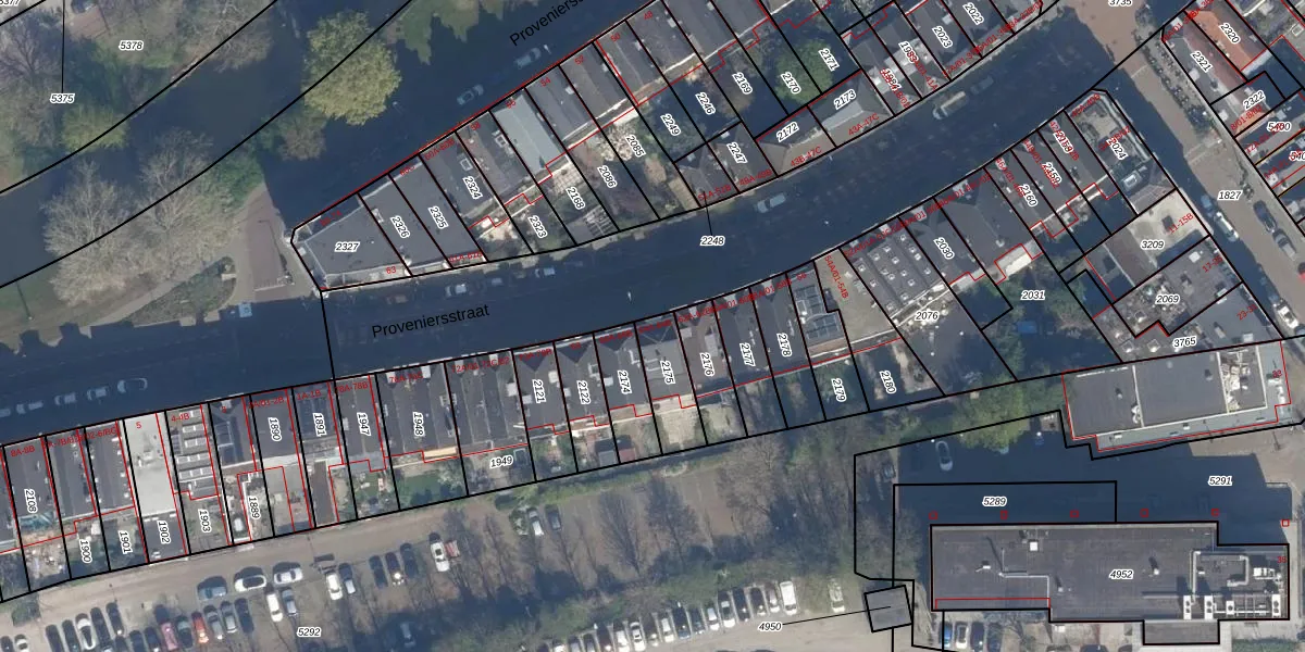 Het perceel waarop Proveniersstraat 64-B staat heeft een oppervlakte van 140 m². Dit is een middelgroot perceel. De perceeloppervlakte wordt geregistreerd door het Kadaster. Gedetailleerde informatie over de maten van dit perceel kunt u vinden in het rapport Kadastrale kaart met maatvoering van Proveniersstraat 64-B.