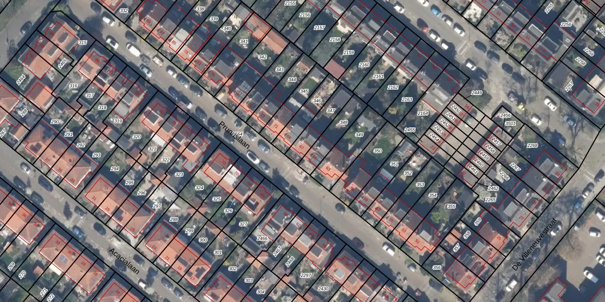 Het perceel waarop Prunuslaan 67 staat heeft een oppervlakte van 165 m². Dit is een middelgroot perceel. De perceeloppervlakte wordt geregistreerd door het Kadaster. Gedetailleerde informatie over de maten van dit perceel kunt u vinden in het rapport Kadastrale kaart met maatvoering van Prunuslaan 67.