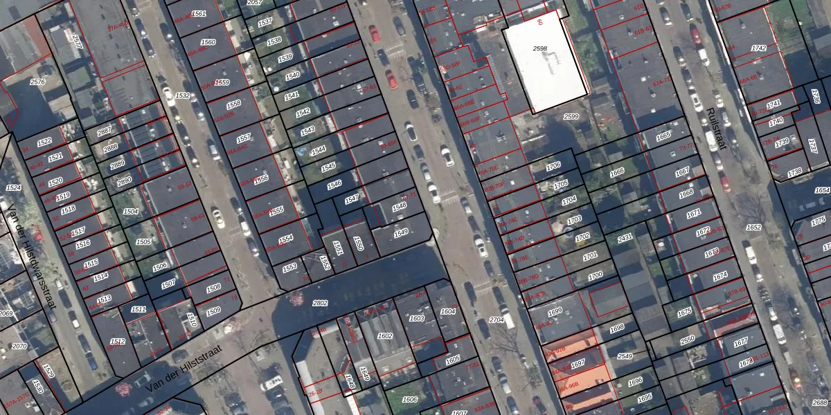Pupillenstraat 69-B is gelegen op kadastraal perceel DHV00F1548. Deze kadastrale aanduiding is uniek en wordt gebruikt door het Kadaster om eigendomsrechten en andere zakelijke rechten vast te leggen. Het perceel maakt onderdeel uit van de kadastrale gemeente Delfshaven.