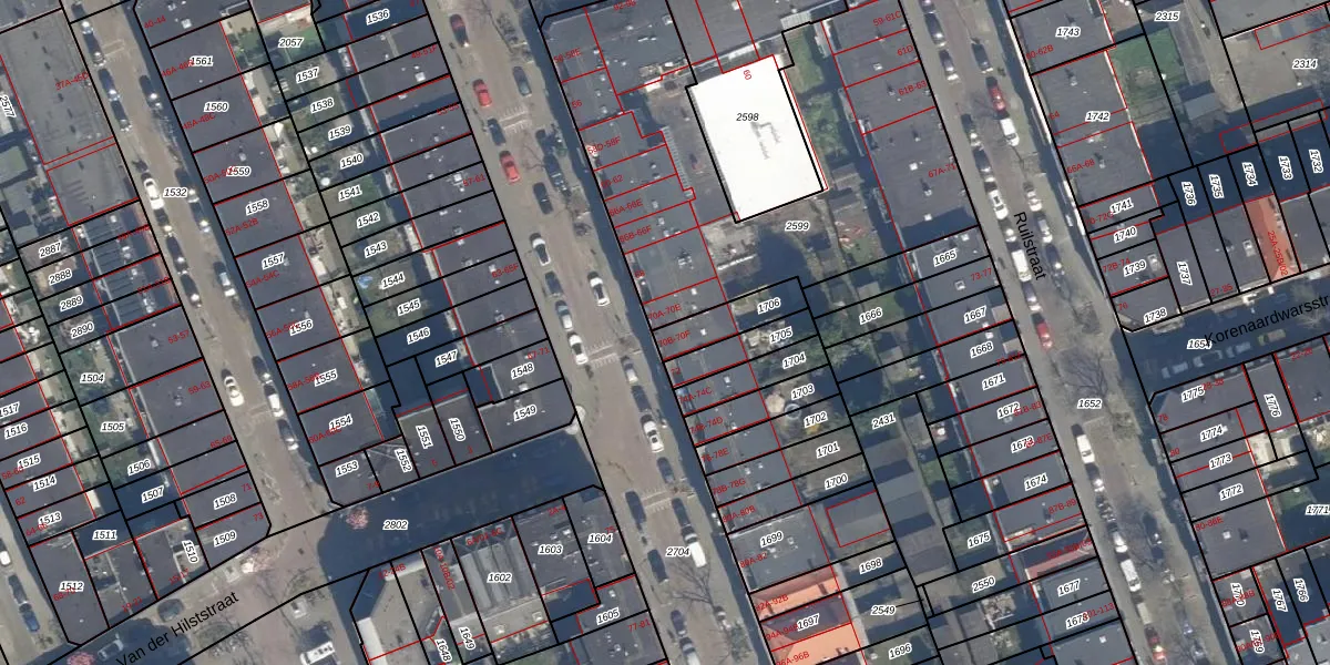 Het adres is gelegen op perceel 1706 in de sectie F en de kadastrale gemeente Delfshaven. De kadastrale aanduiding is aldus DHV00-F-1706. Het perceel is kleiner dan gemiddeld in Delfshaven. Het perceel is 112 m² groot, terwijl het gemiddelde ligt op 628,53 m². Het kleinste perceel in de kadastrale gemeente is 0 m² groot. De grootste perceeloppervlakte is 22,2 ha. Op het perceel liggen in totaal 3 adressen. De huidige grenzen van het perceel zijn digitaal in de Basisregistratie Kadaster (BRK) geregistreerd op 19-03-2003.